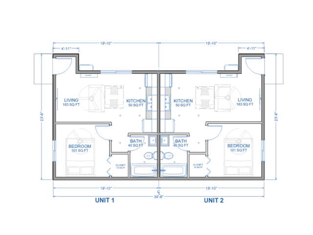 - At 840 sq. ft., this is the smallest multi-unit model in the two-unit-Series.