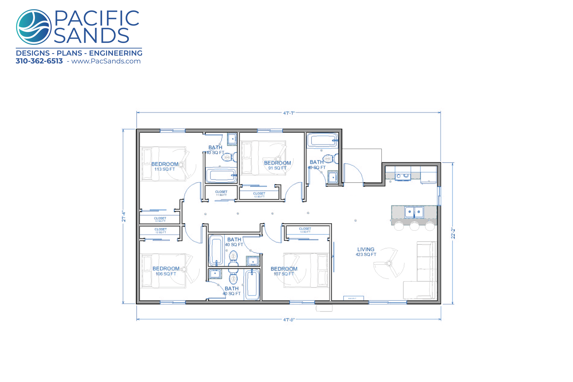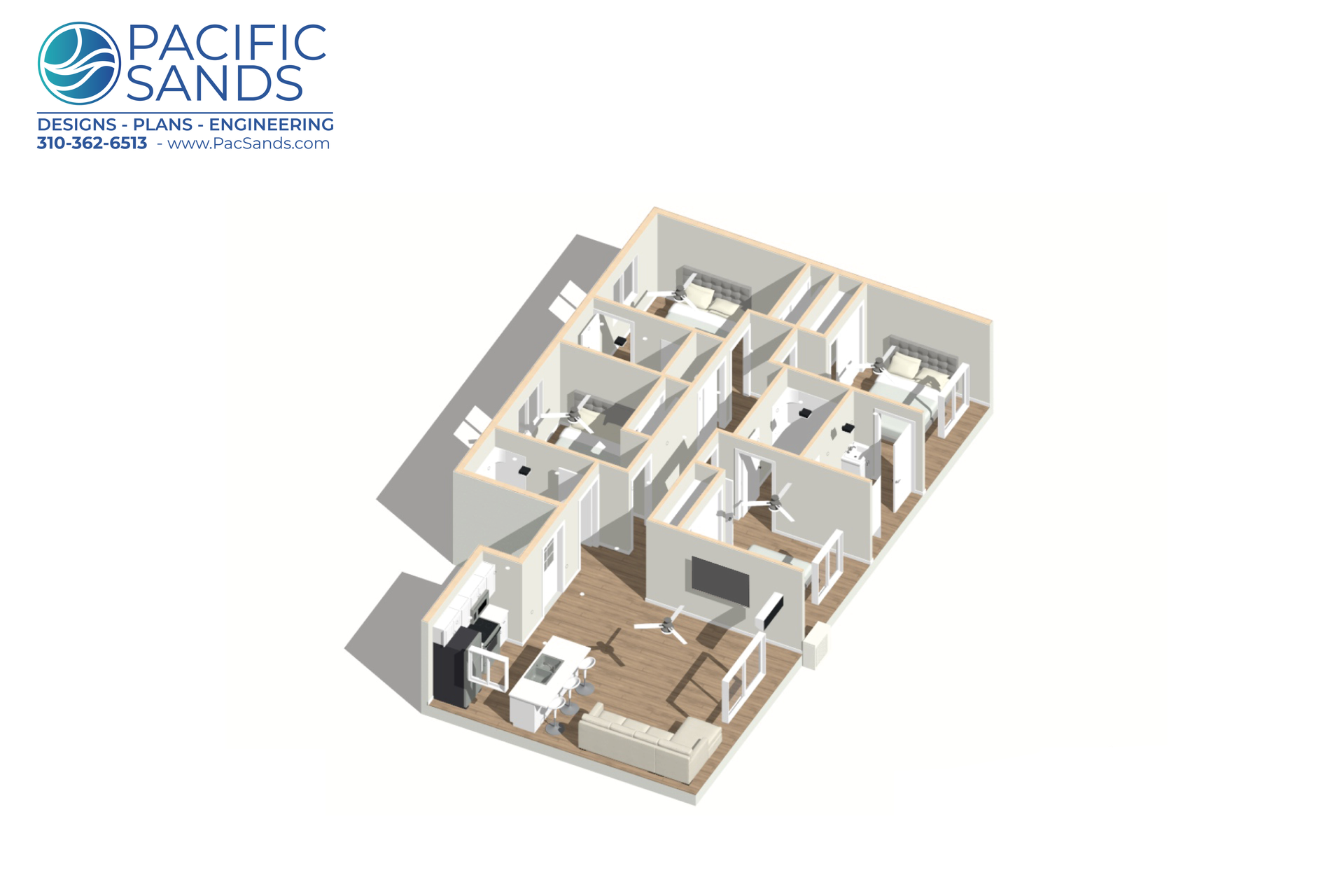 At Pacific Sands, we design ADUs that balance spacious comfort, modern functionality, and long-term value. The BR4-BA4-1200 Model is our largest detached ADU at 1200 sq. ft., offering an impressive 4-bedroom, 4-bathroom layout that feels like a full home while staying efficient and cost-effective.